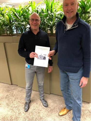 Oplevering van de laatste inventaris door Erich Stapersma, DOXsupport (r) aan de teamleider DIV van de gemeente Midden-Groningen, de heer Zwier Meerman (l).
